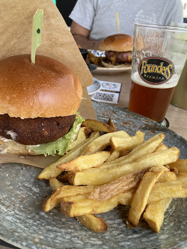 I have to say, the menu of this joint is one of the most exciting ones I’ve seen kn a bit. Came here expecting waaaay too much. If you go here, look up, sweet storage container tapered ceiling. Very well executed and a nice detail. It was a little hard to get the waitstaff’s attention in certain occasions and because of a lack of setup and preparedness for our order, we definitely needed their assistance various times. All the burgers in the menu are exotic and there’s some great ideas in there for the nonchalant eater. As a nonchalant eater myself, I ordered one of them and my partner ordered the vegetarian option. This beyond meat sandwich was really good for others I’ve had. As for the full-on meat burger, There’s good beef in this country, but it’s places like these that make me think that twice. Perhaps the beef they’re buying is not the best (which is common for burger chains).