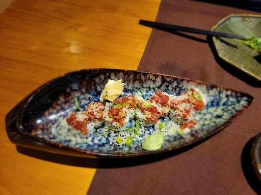 Read moreUn sitio excelente, fui en San Valentín y salí súper contento de allí, la comida estaba excelente, la atención fue inmejorable, la presentación estaba cuidada al milímetro y tuvieron un detallazo que fue regalar a mi pareja una caja de bombones al pagar la cuenta. El ambiente es muy bueno (comí dentro, pero tienen una pequeña terraza adaptada para el invierno) no había mucho ruido, un ambiente tranquilo y acogedor. Nosotros probamos el maki de anguila, estaba muy bueno, y los yakisoba de buey y pato laqueado, ambos estaban riquísimos y el plato es grande, yo quedé saciado y eso que siempre que como fuera me quedo con hambre. Postre no pedimos, estábamos llenos, pero tenían muy buena pinta. La relación calidad/cantidad/precio es buena, muy buena, la única pega, por encontrar alguna, es que el agua eran 2,35 por botella de 500ml cosa que me parece cara, pero bueno, el mercado es el mercado y tienen todo el derecho a poner ese precio, por lo demás, un 10. Tanto a mi pareja como a mí nos...