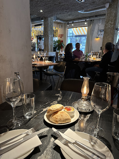 Fuimos a celebrar el día del padre y sin duda ha sido una de las mejores comidas que he tenido hace mucho tiempo. El ambiente es elegante e informal, decorado con mucho gusto: mesas de madera y luz cálida. Hay 3 zonas: la barra, mesas altas y mesas bajas. El personal es muy profesional y agradable. En nuestro caso, que fuimos pronto, nos sirvieron a un ritmo perfecto. Sin prisa pero sin pausa. ¡Gracias Martin! No obstante, antes de llegar estuvimos en la zona de la barra tomando algo, y nos dio la impresión que nos sirvieron menos cantidad de aperitivo que a los que estaban al lado. Supongo que fue un despiste sin más, pero hay que cuidar estos detalles… En cuanto a la comida, la carta es muy variada. Combina platos clásicos con un toque moderno y el resultado es maravilloso. Contenta a todos los paladares. Las raciones pese a lo que pueda parecer en las fotos no son escasas y dan perfectamente para compartir entre varios. En nuestro caso comimos: Gildas de cecina y queso. Muy ricas. La piparra le da un toque picante pero es bastante asumible. Anchoa sobre brioche ahumado. Rico de sabor, buena presentación,… un must. Buñuelos de bacalao. Muy jugosos y el rebozado bien ejecutado. No obstante, no fue nuestro plato favorito (quizá le faltaba algo de sal). La salsa, si te gusta el picante, combina muy bien con el bacalao. Nigiris de atún rojo. ¡Espectaculares! Obligatorio pedirlos. Por su apariencia, nos parecía que la base era un brioche, pero nada más allá. Es la base del nigiri de arroz frita. Encima tiene el tartar de atún rojo perfectamente marinado y coronado con un toque de spicy mayo. Para comerse 1000. Orejitas de cochinillo confitadas. Del nombre del plato esperábamos la oreja tierna, pero todo lo contrario. En el exterior es muy crujiente (no para todos los gustos). Quizá fue el plato que menos nos encajó por esperar otra cosa. De sabor estaba rica. Pulpo a la parrilla sobre puré de patatas. Absolutamente increíble. En las fotos parece pequeño, pero vinieron dos patas de un grosor muy considerable. El punto de cocción era correcto y el sabor a parrilla acompañaba bien al propio pulpo sin enmascararlo. El puré de patatas me encantó, vino con trozos grandes de patatas enteras (entiendo que a propósito). Confort food total. La ración es más que suficiente para 2/3 personas. Durante la comida pedimos una copa de ribera. Nos sirvieron una De Lara O. No la conocíamos este vino y nos encantó. Inicialmente nos sirvieron el final de la botella y vino con muchos posos. Así que pedimos que nos sirvieran otra y no pusieron ningún problema. Nos encantó. Y menos mal porque la copa son 6.50€… Para terminar, pedimos un flan de huevo. La textura nos sorprendió por ser bastante más sólida que otros flanes pero estaba rico de sabor. Y el caramelo perfectamente ejecutado, con un punto tostado muy acertado. Mención especial también al aperitivo, que es una mantequilla ahumada con las chapatas de masa madre. En general, todo riquísimo, bien servido, en un ambiente super agradable. No se puede pedir más. Pagamos 40€ por persona, saliendo super llenos. ¡Muy...