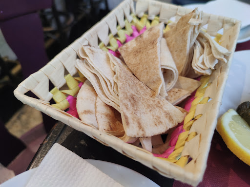 El ambiente del local es simplemente fascinante, con una decoración exquisita que refleja la rica herencia cultural del mundo árabe. Los tonos cálidos, las linternas colgantes y los detalles artesanales crean un ambiente auténtico y encantador que te hace sentir como si estuvieras en un auténtico bazar árabe.