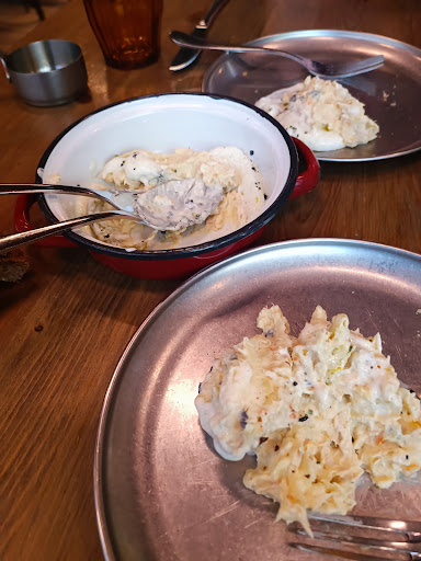 Love it, the quality, food, atmosphere, wines, always happy and smiling staff. If you want to try real authentic Spanish cusine, you must come here. They have lovely, relaxed dinning room in the back. I will start with wines - natural, vegan, perfect. Food - if you are meat lover you will find a lot of excellent options (last time paella was so big that we had 3 tables xd), but I'm vegetarian and i recommend you to eat- ensalada de tomate de temporada con burrata trufada - i've never eat better burrata in my life. You should also ask about croquetas, maybe you will be lucky and they have some vege options that day (my favourite boletus). And dessert - I always promise myself to try sth more, but I'm always taking the same - recuerdos de la infancia - memories of childhood - it's heaven. Hope you will find here...