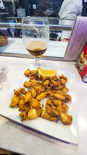 ย ย ย Read moreThis place will always hold a special place in my heart cause it was the last place I ate before I caught one of the last flights out of Europe before the world shut down for the Covid Pandemic. Small storefront on a side street, you'd miss it if you didn't know where to look. Authentic Madrid style tapas bar that cranks out delicious food consistently. I first discovered this place cause I needed something quick to eat on a bus ride I had to Lisbon and they make delicious quick to go sandwiches any time of the day. The pork with the peppers was so good. They have a front part where the bar is and a more relaxed seating area in the back that's more like a sit down restaurant. I usually always sit at the bar and there's usually some local sitting there too. I love the fact that you can drink a beer here early In the morning and not one person gives you a look of judgement, my type of place. The ladies seem stand offish but they're actually really nice they're just always busy and don't like people cluttering the space up since it is small. My advice sit at the bar and have them serve you suggestions of their best tapas. You can get anywhere from 4 to 5 plates with a couple beers and still pay under 20 Euros. The Calamari & Paella are delicious, and I had another dish with sausage and fries topped with egg which was soo effing good. Make small talk with the ladies and they'll give you insight not on just their food but other suggestions for the area if youre a foreigner. I just really enjoyed all my interactions with the workers here and it definitely made me fall in love with this place. If you want cheap quick tapas you have to check...