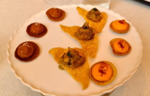 En definitiva, un buen restaurante, buen servicio, buena calidad, bien preparado, bien presentado… pero sin magia. Como un buen restaurante de los de toda la vida pero actualizado. Exquisita la gamba blanca al ajillo con huevo frito y patatas; muy buenos los callos de mar y tierra; buenas, aunque algo decepcionantes, las alitas de pollo con bogavante; bueno el salteado de alcachofas; muy buena la presa de cerdo ibérico; mejorable las setas con sopa de foie; muy buenos los cítricos con galleta de romero y helado de queso y miel; insípida la mousse de chocolate y aceite con avellanas… Probamos muchas cosas y, lógicamente, unas nos gustaron más que otras. Y lo que queda claro es que es un buen restaurante, pero con la historia que tiene detrás lo cierto es que esperábamos algo más y, sobre todo,...
