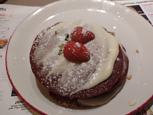 Para ser un plato nuevo, no me gustó. Las zanahorias estaban muy duras, había poco queso feta pero muchos trozos grandes de remolacha. Cuando terminé, pedimos el postre para mi hijo, una tortita. Yo no pedí nada porque me quería ir ya. Se la trajeron con mucho retraso.