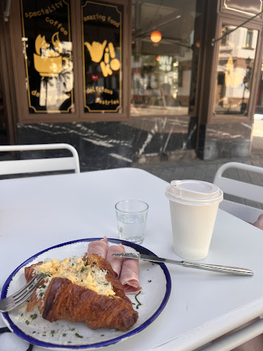 Read moreWe were staying nearby and the owner of the apartment recommended this cute cafe for breakfast. They have: Great coffee (alternative milk options) Highly recommend the chicken sandwich it was reaaally nice, the filled croissant also good 👌🏽 (the day before they served us a dish that my friend wasn’t happy with and they were super respectful and changed it immediately, that’s just good with clients that made us come back and trust them more) The service is amazing 😻 The staff is lovely and the all speak English (kinda inlove with the barista, she is sooo pretty 😍)
