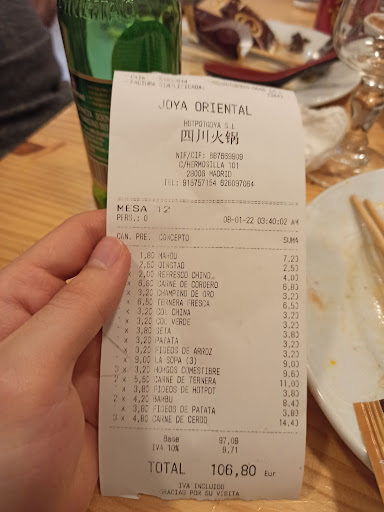 Read moreUn amigo me descubrió este restaurante que hace honor a su nombre, "Joya Oriental". Está en un local pequeño que casi siempre está abarrotado. Si te gustan los típicos restaurantes chinos muy occidentalizados, en los que te ponen arroz tres delicias y rollito de primavera, éste no es tu sitio.