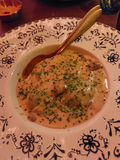 Walk into a vegetarian dream! The decor of this place is absolutely amazing, the soft music playing blends perfectly into the colours, mirrors and fairy lights. Start with a cocktail: the list is not huge (a massive green flag!) and very well balanced and personalised. I got the Zíngara fashioned and it was amazing! You will be offered bread and hummus: DO NOT SAY NO! The hummus is incredible. We then ordered Muhammara -which is not quite traditional but it’s very good. Don’t expect a Damascus street muhammara, but you will be mind blown. Second I got the lentil stew. Now: erase from your mind what your mum used to make. This is some next level delicious mix of lentils, pears and coconut cream. My partner got the aubergine milanese and my oh my, it was better than my grandmas (who makes it with veal though…) Overall a spectacular experience, will definitely be back! The restaurant is wheelchair accessible but it’s a bit crammed so maybe worth informing...