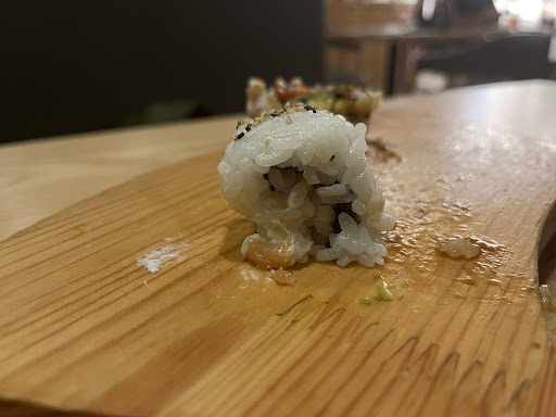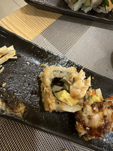 A ver, por dónde empiezo Hoy he ido a cenar con mi pareja a este sitio por primera vez, de manera que nos pareció de primeras un sitio bueno, las reseñas estaban bastante bien y pues decidimos ir. Nos sentamos en la mesa, pedimos una botella de vino y empezamos a mirar la carta. Nos llamó la atención el roll número M13, que tal y como indica la descripción, trae langostino, aguacate y salmón flameado. Pedimos mucha variedad de sushi, y no nos dimos cuenta a la primera de que este roll no llevaba langostino, creímos que era otro, y que el de langostino estaba por llegar. De manera que volvimos a pedirlo, junto a otro tipo de roll que también indicaba que llevaba langostino. Allí fue cuando me di cuenta que una de las variedades traía solo surimi con aguacate, algo que se me hizo raro de haberlo pedido, porque no nos gustan sushi que traen exclusivamente surimi. Llame a la (encargada?) la mujer japonesa que trabaja allí, para comentarle que eso no era lo que yo había pedido, dado que le faltaba el langostino. Me llevó la contraria, y con mala gana me cambió el plato, poniéndome trozos minúsculos de gamba en el mismo roll. Volviendo con los roles m13, que los trajeron justo después de haberle comentado el error anterior, nos dimos cuenta que traía surimi (cuando en este caso la carta no lo indica). Así que volví a llamar a la chica que trabaja allí, a lo que me respondió que no les quedaba más langostino (mentira, porque la mesa de al lado estaba comiendo langostino rebozado). Se acercó otra vez la mujer que parece ser la encargada, y con muy mala cara me empezó a rebatir otra vez lo que pone en la propia carta, y algo de que hay que comentar si lo quiero de surimi o langostino, diciéndonos que ya habíamos pedido muchos platos que llevarán langostino (y? Por algo es un restaurante)Historias, vamos. Le pedí amablemente que me cambiaran el plato, porque quería comerme , tal y como indica la carta, sushi con langostino. Allí cogió el plato, y a la que se acercó a la barra lo tiró al suelo con todo el cabreo del mundo. De vuelta, se puso a criticarme con los clientes (parecían habituales) que acaban de llegar, pensándose que ni yo ni mi pareja nos estábamos dando cuenta. Al rato me trae otra vez el m13, y ojo, CON SURIMI Y TROZOS PENOSOS QUE PARECÍAN RESTOS DE GAMBAS, como se puede apreciar en la fotografía que adjunto. Así pues, no me comí ni el m13 ni el otro que me cambiaron. Entiendo que se puede terminar algún ingrediente, pero hay que avisar antes de poner surimi. Y si hubiera sido alérgica? En fin, que hay que decir que la comida estaba bastante normal, aunque no de lo mejor que llegamos a probar, pero el trato, las faltas de respeto y el no cumplimiento con la carta, nos han dejado muy disgustados. Lamento decir, que han perdido a unos clientes que podrían haber sido habituales. Sin duda, no...