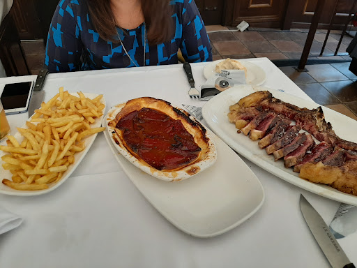 En este caso tuvimos más una experiencia que una cena, comencemos porque ibamos invitados por 100€ que tuve la suerte de ganar en un torneo de golf, no conocíamos el sitio pero si alguna reseña que nos habían comentado. llegamos los primeros ya que ibamos con un pequeño y no s atendieron no bien , no mejor que bien , nos atendieron de manera impecable, todo el servicio fue de 10 , las recomendaciones, el vino por copas (LOS CANTOS CRIANZA) que me apunto para casa, y los platos que detallaré porque si alguien lee esto y le ayuda seguro que no le defrauda. primero: EL PAN ES UN ESCANDALO, NO AÑADIRÉ MÁS. ENTRANTES: nos recomendaron Boletus con yema de huevo, (RIQUISIMOS) , además pedimos una CHISTORRA Y ALMEJAS A LA MARINERA, la chistorra impecable , LAS ALMEJAS además de picantitas son para llevarte la salsa en un bote y mezclarla con cualquier cosa que tengas en casa para comer (UN 10). SEGUNDOS: CHULETA MADURADA 30 DIAS ( EXCELENTE) RAPE , del Rape comentar que era más que redondo, de punto , de salsa , de cantidad, para pedirlo una y cien veces. POSTRE: PANCHINETA , IMPRESCINDIBLE , QUE COSA MAS RICA Y MÁS BIEN HECHA, LA CARA DE MI HIJO ERA DE ABSOLUTA FELICIDAD.