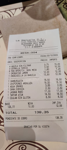 Menudo cambio...a peor Ha sido un desastre..hemos venido a cenar 5 personas y un bebé. Hemos pedido 6 platos para compartie: Croquetas: 3 de jamón y 3 de albahaca y tomate..ricas aqui no ponemos ningun pero. Churritos de pollo: finisimos..pero ricos de sabor,aceptable aunque si fueran un poco más gorditos las mini tiras de pollo mejor. Pulpo a la brasa: era muy pequeño y estaba duro, no.merece la pena pagar ese dinero por esa cantidad, la patata que va de acompañamiento muy rica. Huevos la Manuela: muy ricos, patatas panaderas sabrosas, 2 huevos fritos gorditos y los torreznos muy ricos, gorditos y sabrosos recomendables. Provolone: fatal, incluso dijimos que nos sabia ácido y se lo llevaron, dijeron que era la mezcla del tomate..cebolla y queso, terrible ahi lo dejamos. Risotto de.botetus: sin duda lo mejor de toda la cena, no podemos poner ningun pero al contrario. De postres pedimos... Brownie: muy durete pero rico en sabor. Coulant de chocolate con helado de violeta: muy rico, el helado riquisimo a destacar. Tarta de queso: aceptable pero mejorable. 3 refrescos, 2 copas de vino blanco y ojo!!! Pedimos vaso de agua y nos dicen que no es.posible, que tiene que ser botella ( casi 4e...) al pedir la cuenta que han sido mas de 125e le digo al camarero que si puede decirme la.razón por la que no pueden ponernos un vaso de agua y nos traen la botella de coste cuando hemos visto en varias ocasiones como los camareros servian a otras mesas vasos de agua...se.disculpa diciendo que el.chico que.nos atendió lleva poco tiempo en la empresa, menciono la normativa que salió de no negar a ningún cliente agua del grifo en la C.Madrid y no sabe ni que decirme..lamentable esa actitud. No volveremos..una pena porque hemos venido varias veces y siempre lo recomendabamos al estar por la zona pero despues de lo de hoy NO Había solo 2 camareros para la cantidad de mesas que éramos y tardaban mucho,15min esperando la cuenta para rematar la noche Ah!! Se me olvidaba, un detalle feisimo es que te cobran 1.75e por comensal por el pan y el aperitivo que luego lo puedes leer en la parte final de la carta, pero nadie te pregunta si lo quieres, directamente lo ponen y luego te encuentras la sorpresa