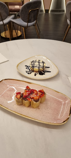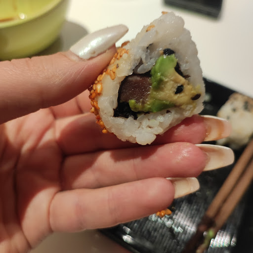 Fuimos a cenar dos personas a las 11 aproximadamente y pedimos sushi dragón y tobiko salmon, cuatro piezas de cada uno, yakisoba vegetal con huevo a baja temperatura, gyozas de carne y de postre una cheesecake de chocolate blanco y un miss Nutella con fresas y una botella gran de de agua pra compartir. Todo lo que pedimos fue por sugerencia de la camarera que nos atendió la cual fue un encanto y muy atenta. El sushi fue el mejor que hemos probado, el yakisoba también es unos de los mejores que hemos probado, las gyozas estaban buenas y eran más sabrosas de lo normal. En cuanto a los postres el miss Nutella estaba muy bueno pero no es nada del otro mundo, es crepe con arroz y Nutella, la cheesecake de chocolate blanco estaba riquísima, aunque se nos hizo pequeña de lo rica que estaba. En cuanto a las raciones, nos parecieron más que suficiente, el ambiente muy agradable tanto la música como el personal y el establecimiento es bonito y estaba muy limpio. En relación al precio, nos pareció adecuado a la cantidad y la calidad de la comida. Entre los dos fueron 39.2€, lo que hace un precio de aproximadamente 20€ por cabeza. En general quedamos súper satisfechos y...