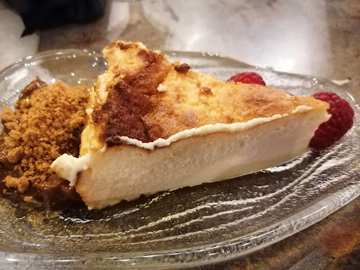 Al terminar las milanesas, con casi nostalgia de cuando aún teníamos algo en el plato, nos fuimos a por el postre. Una tarta de queso con dulce de leche que estaba brutal. Una textura impecable y un sabor que combina a la perfección con el dulce de leche. No es una tarta de queso con florituras, pero eso no la lastra en absoluto.