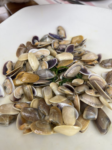 De primero tomamos unas fabes con setas y asadura y a mí me gustaron, pero no era para todos los paladares y sólo había otro primero que eran puerros con almejas.