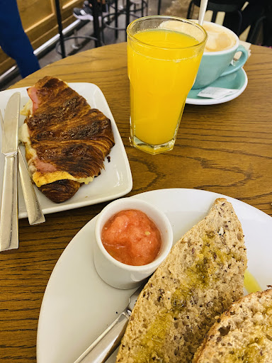 EL PRODUCTO? Bueno, disponen un café excelente. Muy excelente. Lo pedí salpicado con canela. Croisant mixto: normalucho. El resto de productos tendré que seguir probándolos.