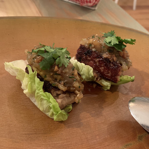 3- Ssam [4€ unidad]: Cochinillo, Gambas y no se que más. Un bocado disponible fuera de carta que nos aconsejaron y dejó a medias. Cochinillo algo más tostado de la cuenta. Regular.