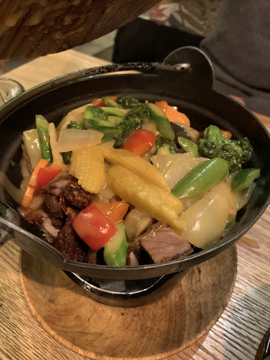 Read moreNunca había venido a este local. Me atrajo sus buenas calificaciones. Como no soy de arriesgar, quería probar el menú del día. Y dentro de los menús del día, quería probar el más caro: 17,5€ Los camareros muy amables y atentos, pero sin llegar a ser pesados, lo que se agradece. Me trajeron la carta. No vi dentro de la carta en ningún sito indicado el menú diario. Tuve que preguntar al camarero y poco después me trajo la carta del menú diario. Si no lo pido ni me lo indica. Me verían con cara de pardillo a ver si colaba. De bebida pedí una sidra. No tenían. Pasé a la tónica. Esta vez sí. Vino en un vaso grueso con sus hielos y un trozo de limón. Todo muy limpio. Daba gusto beber ahí. El entrante fue unas gyozas. Ricas. Después me trajeron el acompañamiento. Arroz con verduras. No llegaba a estar pasado el arroz, pero casi. Pensaba que iban a venir rehogado de alguna manera pero no, arroz y verduras, tal cual. Pedí salsa soja porque así estaba muy soso. Luego vino el plato principal. TIGER ROLL: Roll temporizado relleno de salmón, aguacate, masago, queso crema y salsa de anguila. De pinta tenía buena pinta, pero luego cuando lo probé, el arroz del sushi esta a muy pasado. Comer el Tiger Roll era como comer una masa uniforme. No notaba ni el sabor del salmón, ni del queso, ni del masago. Eso sí, la tempura estaba bien hecho. Una gran decepción. De postre, no eran los postres de la carta, eran postres del menú diario. Pedí un brownie con helado. Estaba bueno, pero el brownie no era como lo que sueles encontrarte, esos ladrillos de color casi negro. Esta vez era más tirando a chocolate con leche y más esponjoso. Diferente, pero bueno. En general, me tiró para atrás el sushi, que era lo que más me apetecía. Salí desencantado sin muchas ganas de volver otra vez. Quizás los platos no tan japoneses estén mejor. Pero...