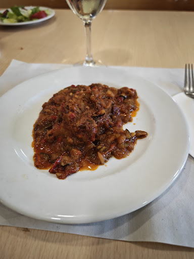 Read moreEl restaurante tiene 2 salas ,una de currantes del polígono, dónde es casi imposible mantener una conversación por los gritos y vocerío. Faltaba limpieza,lleno de papeles por el suelo y aspecto de dejadez en general. Otra sala mas moderna y tranquila y no tan ruidosa. A las 15:00 horas faltaban 4 primeros platos del menú. Segundos quedaban aún pero algunos sólo para 2 comensales. El servicio es rapido y eficiente. Una ensalada de cortesía. Despues croquetas 7 unidades peladas sin guarnición. y ensalada Caprese,correcta con algúun tomate un poco pasado. Segundos: pinchos con patatas,correctos sin pretensiones y secreto con patatas, éstas revalentrecalentadasadas recalentad y frias. Postre fresas con nata correcto. Café incluido. No es un lugar para ir a comer tranquilo,mucho ruido y...