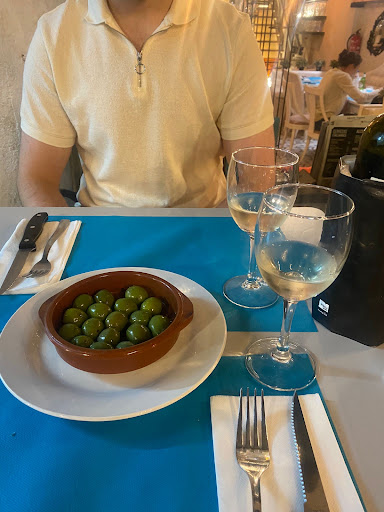 The meal started with a small plate of complimentary olives!