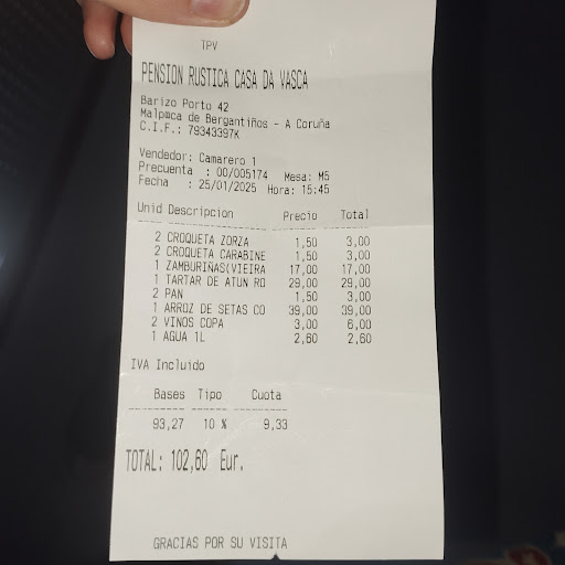 Read moreWe were really looking forward to our last night in Galicia at Casa da Vasca.||We booked through Booking.com and arrived some time after 3pm, and introduced ourselves to the male owner (never did find out his name). He was in no way welcoming and was actually ‘antipático’. What then ensued can only have been described as a drama, and not a very pleasant one at that.||||We had booked a double room and were taken up to the second floor and shown the sea-view room. It was perfectly fine, but rather small and I asked if there were other rooms, and we were told the top floor, superior room was available. We looked at this room and both agreed we would take it and pay the difference for the upgrade – again the conversation taking place in Spanish.||||We then went back down to the bar, which doubles as reception, and handed over our Visa card for check-in. It was at this point that the owner said that he preferred cash. This was a big surprise as Booking.com clearly states that payment can be made by Visa. Indeed, if you book directly with the hotel, bookings are taken by Visa. He became quite rude and agressive and continued to insist that we paid in cash. We really did not want to drive the 5 kms back into Malpica to an ATM as parking was difficult, and why on earth should we?||||In the end, he said we would ‘sort it out in the morning’, but in all honesty this incident really spoiled our stay at the hotel and we were both left with the feeling we were in for a further unpleasant encounter with him in the morning.||||We did eat in the ‘restaurant’ in the evening (the only customers), and mine host was a transformed character - rather pleasant and chatty. The food was only mediocre and we should have booked to go to the restaurant next door.||||In the morning, and being unsure if breakfast was, or was not in price (there was in any event, no breakfast menu or tables set), we just had a coffee with a view to getting on the road pronto. We then went to pay, Visa credit card in hand and lo and behold, this now seemed to be fine. We can only be left to wonder at the previous day’s encounter.||||Would we return? No. The sea facing rooms do have an amazing view, but standard rooms are small, the food was not good, the prices (room and food) expensive compared to the rest of our trip around Galicia and the encounter with the owner unpleasant.||||(As a post-script – we did report back to Booking.com, who took the incident up with the owner who stated that he told us on the day we arrived that he ‘would prefer cash, but was happy to be paid by Visa’. We maintain our own version of events, as...