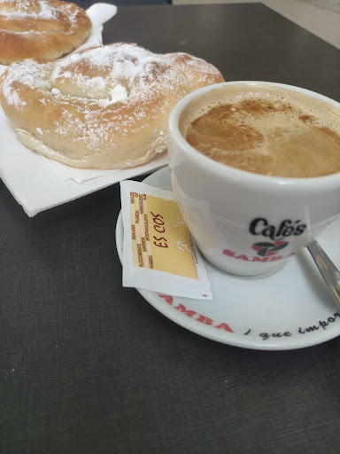 Read moreMan sitz draussen in der Fußgängerzone unter weißen Schirmen. Eine sehr nette Bedienung, die auch freundlich/witzig 😉 mit nicht spanisch sprechende Gästen umgeht. Dabei ein flotter Service. Wir hatten das mallorquinisches Brot mit Tomaten, Zwiebeln, Paprika, Serano-Schinken und Käse frisch zubereitet und total lecker. Sollte man probiert haben!