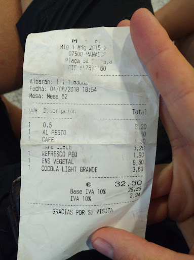 The prices of the dishes we ordered were okay but drinks were overpriced in Mallorcan context, especially considering what hole this Manacor town is. 1/2l water: 3.20, Coke: 3.60. Are they taking advantage of customers rarely checking the beverages menu?