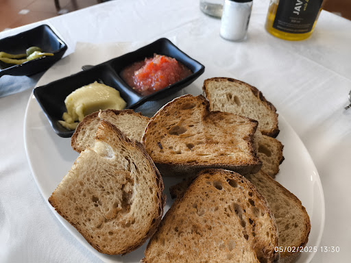 Read moreBuen asador con un comedor con vistas espectaculares. Quiero hacer una valoracion honesta teniendo en cuenta que la nota global es muy buena, que recomiendo el sitio y que volvería sin dudarlo. Es un local especializado en arroces, carnes y calçots pero tienen una variedad en la carta que lo hace muy completo. El servicio ha sido cercano, amable y atento. Los tiempos de la comida han sido perfectos ya que no hemos tenido que esperar ningun plato mas de lo necesario. El ambiente ha sido relajado y bueno ya que llegamos sobre las 13:00 y habia poquita gente. Paso a valorar la comida: Pan con tomate y allioli. Buenisimo. Es perfecto cuando llegas muerto de hambre. Quiza para dos personas habia demasiado pan, pero oye mejor que sobre que no que falte. Ensalada con salsa de setas, queso de cabra y frutos secos. Buenísima, quizá echaba en falta tener mas presente el queso de cabra en medallones o en cubos. El contraste entre el salado y el dulce de las pasas estaba bien equilibrado. La croqueta de jamón. Buena. Me esperaba una bechamel no tan apelmazada. El sabor era bueno pero no espectacular. El tamaño era lo que consiguió enamorarme porque era un croquetón casi como dos croquetas. Calçots. Muy buenos. A la brasa en su punto con su salsa romesco. Entrecot y chuletas. Muy buenos ambos. La carne estaba perfectamente hecha y en su punto. Nos sirvieron una guarnicion de patatas paja con pimientos de padron en un plato a parte. El emplatado de la carne quedaba un poco desangelado. Creo que la guarnicion deberia volver al plato acompañando la carne. Esa union deberia ser imparable. Y creo que las patatas paja no estan al nivel de este plato. Me hubiera gustado unos medallones de verduras (berenjena, calabacin, esparragos, etc) a la brasa o patatas fritas tradicionales acompañando el principal. No tuvimos oportunidad de probar los postres por la prisa pero estoy seguro de que estaban muy buenos! Lo recomendaria...