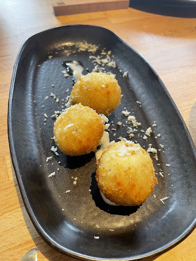 Read moreLocal renovado con nuevos dueños así que hemos decidido ir a probar su nueva oferta. El local con la nueva decoración ha quedado bastante chulo y se ha especializado en carnes y arroces. Hoy nos hemos decantado por probar 4 platos para compartir comenzando por unas croquetas de gorgonzola que para mí tenían la textura perfecta, crujientes por fuera y cremosas por dentro. Luego hemos pedido el aguacate a la brasa con salsa pesto que ha sido todo un descubrimiento además de novedoso, no lo habíamos visto antes en una carta. Un puerto a la brasa acompañado de una salsa que no recuerdo de que era pero que nos ha gustado. Y un plato de baba ghananoush (especie de humus de berenjena) con un pan tipo pita, un plato bastante bueno y una gran alternativa al humus. Como plato fuerte hemos pedido dos txuletones de carne madurada al punto menos (bien roja por dentro) muy rica, la carne estaba tierna, la grasa tenía un toque a sabor a mantequilla y a pesar de la maduración tenía un gusto moderado a carne madurada. Nos los hemos acabado con mucho gusto. Por último hemos pedido postres para compartir como las trufas de chocolate con trufa, el pastel de queso con mermelada, el plátano a la brasa y del último no recuerdo el nombre. Los postres también han estado a la altura y volveremos otro día a probar esas propuestas gastronómicas diferentes como la que nos ha sorprendido hoy con el...