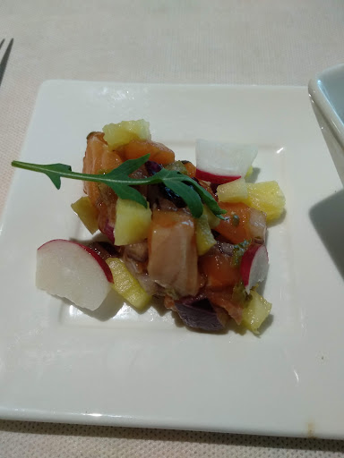 Restaurant situat al costat d'una zona indústria, un 1 pis, ascensor i escales. Local ampli, amb ventiladors al sostre, una mica molestos al començament. 4 comensals. Primers. Amanida amb pollastre (2) Verduretes bravas(1) Amanida Thai (1) Segons Bacallà amb Muselina Canalens de rostit (2) Tall que es pela(1) Cistella de pà (3,5€🤔) 3 tallats 1 descafeinat 1 gelat 1 aigua 1 coca cola 4 cerveses 164,80€.