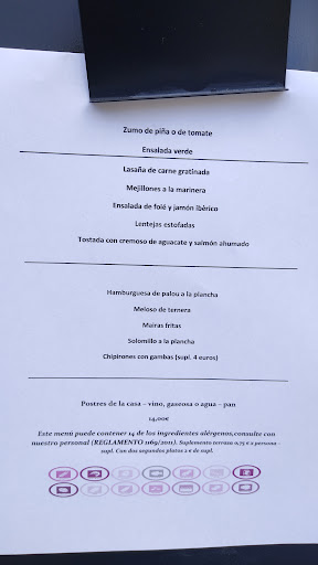 A restaurant for locals and well used by them. Very good quality of home style dishes. We had the lunch time menu that had a number of choices for each of the four courses. A simple entree, then the 'first' course followed by the 'second' and then dessert. All for 14€. This set price also included a bottle of wine, water and bread. The atmosphere is very friendly, but it may help to order if you can speak and read some spanish. We have a dog and they accomodated us on a table in the bar area rather than the dining room. My wife and I will certainly visit again when...