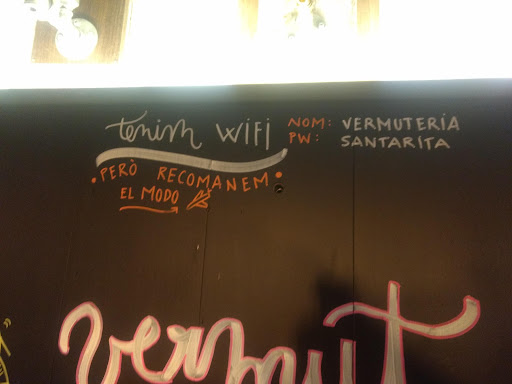 Read moreLa Vermuteria Santa Rita és insuperable en tots els sentits. El local té un atractiu únic i fascinant, amb l'aire d'antigor que respecta la personalitat pròpia del Barri Antic de Manresa, i el caràcter radicalment artístic dels detalls del mobiliari i de la decoració. Tradició i originalitat, història i modernitat. A dins, un meravellós cau per fugir del món. A fora, una terrasseta irregular i indesxifrable com els enrevessats carrers medievals de la ciutat. El tracte és espontani, enèrgic, viu, jove. La Bi Rita, cervesa artesana creació de Guineu, d'obligat tast i gaudi. Les braves, llegendàries. Les escopinyes, les olives variades... tot...
