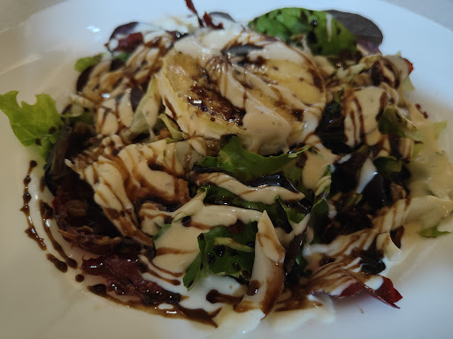 Read moreWe stayed in the bedroom on the right at the end of the hall (only 4 rooms), and it was lovely. Our first room on the Camino with real furniture (headboarded bed, armoire, good mattresses too) and thoughtful “local” decor (woody, nice sketches of local points of interest, all nicely framed.) Good linen: Sheets even had lace trim! Large window opened onto grapevine-covered patio and church steeple. ||Dinner was tasty (tender chicken, home-made dessert (delicious lemon cream). Ambience in dining room was upscale/cozy. Pale blue water tumblers made you feel 10 degrees cooler! Excellent and cheerful service. ||Breakfast — 2 fried eggs over easy and good thick toast/ coffee or tea and oj. Simple and quick.||Shower very small. ||Otherwise, nice...