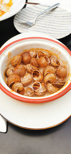 En casi todos los restaurantes de España, pedimos patatas bravas, y vivimos en Madrid durante dos años. Es la primera vez que nos sirven unas patatas bravas tan malas. Había dos salsas y muy poca cantidad de ellas. La salsa negra no tenía sabor y la roja apenas tenía un toque de pimentón dulce. Sin motivo aparente, decoraron las patatas con azafrán. Parecía ridículo poner la especia más cara del planeta en el plato más sencillo: patatas al horno. Además, estaban crudas. Las devolvimos y alguien que suponemos era el cocinero o el dueño preguntó si todo estaba bien, pero intentó contarnos una historia elaborada sobre cómo preparan las patatas y que estábamos equivocados al pensar que no eran patatas bravas. Las croquetas estaban bien. En resumen: mala comida y sobrevalorada, sin especias, sabor insípido; incluso tuvimos que pedir sal y nos dieron una pequeña bolsita para condimentar la sopa. El servicio también es muy malo; no creas a los dueños que responden a las antiguas reseñas diciendo que es un error de geolocalización de Google y que las malas críticas deberían ser para un restaurante diferente cercano. No es cierto. El servicio es realmente malo y te ignoran la...
