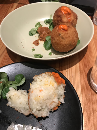 Read moreAy que pedazo de descubrimiento! Comida super rica y distinta.. Estábamos explorando sitios nuevos y éste, aunque llevan ya 5 años, tienen ese toque de que se yo que yo sé qué :D Tenían también exposición de láminas dibujadas Lo mejor de lo mejor fue el servicio. Paula fue magnifica. Una actitud maravillosa y un gusto ser atendida por ella.. Pedí Ribera y trajo dos para que probara y nos echamos unas risas, luego le pedí algo más de aperitivo que veniamos con hambre y fue súper generosa con las opciones. El bacalao nos impresionó y la tosta riquísima combinación hasta me atrevería a decir que el pan era casero de centeno. Genial todo! Repetimos seguro! Si vais a ir a comer o cenar, es aconsejable que reservéis, que el local es chiquitín y la gente lo...