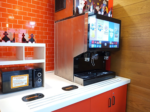 Read moreParamos a comer algo rápido mientras se cargaba nuestro coche eléctrico en la plataforma de carga que hay justo en el parking (con opción para Tesla y opción de vehículos no Tesla) y la verdad es que el cargador era muy rápido... En cuanto al restaurante, no abría hasta las 12h, por lo que tuvimos que esperar un poco (ya podría abrir antes, pues es una gasolinera concurrida) y la verdad es que hacía bastante calor. De hecho, las mesas de fuera, de plástico, estaban a pleno sol y había bastantes moscas. Una vez dentro, no tardamos mucho. Usamos un descuento que teníamos y nos salió más económico. Y, lo bueno, es que podías rellenarte la bebida de forma gratuita en las máquinas las veces que quisieras. Esa parte estaba muy bien. Lo que no estaba tan bien era la limpieza de los baños: faltaba jabón y había papel higiénico de ese que se parte y no seca y deja trocitos por todas partes. (Y eso que acababan de abrir a las 12h, por lo que se presupone que debería estar muy limpio). También había algunos clientes que pasaron sin mascarilla y creo que las dependientas deberían haber estado más pendientes y tajantes con eso, por la salud de todos. Las mesas, aunque con precinto de seguridad por el Covid en zigzag, para que no te sentaras al lado, también dejaban mucho que desear en limpieza... ¡Algunas estaban sucias! La hamburguesa tenía buen...