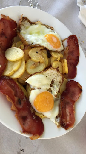 La primera vez, pedí unas patatas con bacon y queso, lo único que se podía comer eran los pequeños trozos de bacon. Las patatas estaban en mal estado, como de haberse descongelado y luego haberlas frito. Lo dijimos a un camarero y tuvo el detalle de pedir disculpas y no cobrarlo.