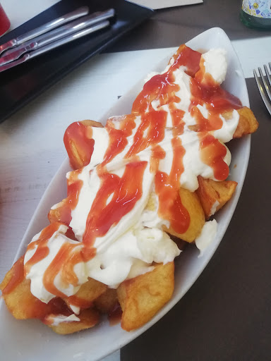 Read moreHemos hecho un pedido para entregar a domicilio, nos han dicho media hora y tras una hora esperando llamamos y nos dicen que habían extraviado la dirección, ni siquiera con una indicación de un supermercado del pueblo se habían acercado aquí y por supuesto tampoco llamar. Preguntamos si la comida llevaba mucho hecha a lo que, el que atiende el teléfono “se le escapa” decirnos que si, les digo que espero que la cena la recibamos caliente y cuál es nuestra sorpresa cuando los bocadillos están HELADOS, el pan se deshacía y pegaba del rato que había estado envuelto con la humedad del calor etc y las patatas de los huevos rotos frías y crudas. Ni siquiera se han dignado en no cobrarnos los gastos de envío o decirnos que para otra vez nos hacían algún pequeño descuento tanto por la espera del doble del tiempo indicado y peor todavía las condiciones de la comida. Vamos, que porsupuestísimo que no nos ven el pelo ni en el restaurante ni pidiendo...