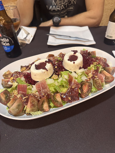 Read moreFuimos a comer por la puntuación que tiene aquí. Pedimos menú ya que la carta no se correspondía con la que sale en Google. La verdad es que los segundos, carnes a la brasa, y postres genial, bien cocinados y buen producto; los primeros una decepción, tabla de embutidos como la que puedo comprar en cualquier supermercado, potaje de bacalao sin bacalao. Lo peor fue la espera, la cocina va muy lenta, a pesar de haber dos personas. Sólo hay dos camareros que no están atentos a las mesas, tienes que levantarte a la barra a pedir lo que te falta. Hay que pedir que retiren los platos. La chica, a pesar de eso, muy simpática y agradable ya que se veía que estaba también echando una mano en cocina, el chaval que hay pues parecía, como dice otro comentario, que lo único que le importaba era llevar bien el pelo, pésimo camarero. Entiendo que estamos en tiempos difíciles y que puede haber falta de personal, pero no entiendo ir a un restaurante a las 2 y media con reserva, comer a las 4 y tener que estar levantándome a pedir cosas tan básicas como aliño,...