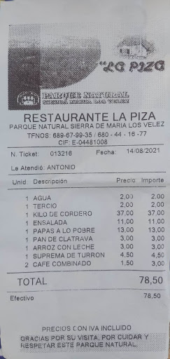 Read moreFuimos ayer 4 personas. El entorno es único, en estos días de calor de los pocos sitios donde se puede cenar al aire libre. El servicio muy rápido y atento, una vez que consigues llamar la atención de un camarero, lo que no suele ser demasiado fácil cuando, como ayer, tienen tanta gente. Pedimos una botella de agua, una cerveza, un plato de cordero segureño al centro, con patatas, una ensalada, tres postres y dos cafés. Total 78,5€. El cordero buenísimo, cosa que ya preveíamos pues tenemos casa por la zona y sabemos que esta carne es una delicatessen y muy fácil de hacer a la brasa, ya que admite perfectamente que la dejen pasada. El resto normal-bien, incluyendo buenos postres. En general producto rico y presentado conforme corresponde a un sitio tipo "merendero medianamente fino". No ofrecen carta, ni te cantan precios, lo que no vendría mal dado el nivel de precios en algunos productos, como, precisamente, el cordero segureño. A mi juicio resulta excesivo que, dadas las características del lugar, te cobren 50 € por un plato de cordero con patatas a lo pobre al centro, que compartido entre 4 no muy comientes quedó escaso. Si el precio hubiese sido de, digamos 13 € menos, que es lo que cobran por las patatas aparte, cuando deberían incluirlo en el precio de la carne, sería genial. Tampoco te dan ticket al final, yo lo tuve que pedir. Y en cuanto al pago, cierto lo que dicen por ahí, mejor preparar efectivo ya que no tienen datáfono y aunque admiten Bizum, el lugar tiene una cobertura telefónica que varía mucho en función de la compañía y te puedes ver en un aprieto por este tema. En definitiva, comida muy buena, servicio rápido si consigues que te atiendan (cuando pides te sirven muy rápido), amables, sitio tipo merendero en buena ubicación entre pinos, precio que en algunos productos es muy caro, y detalles...
