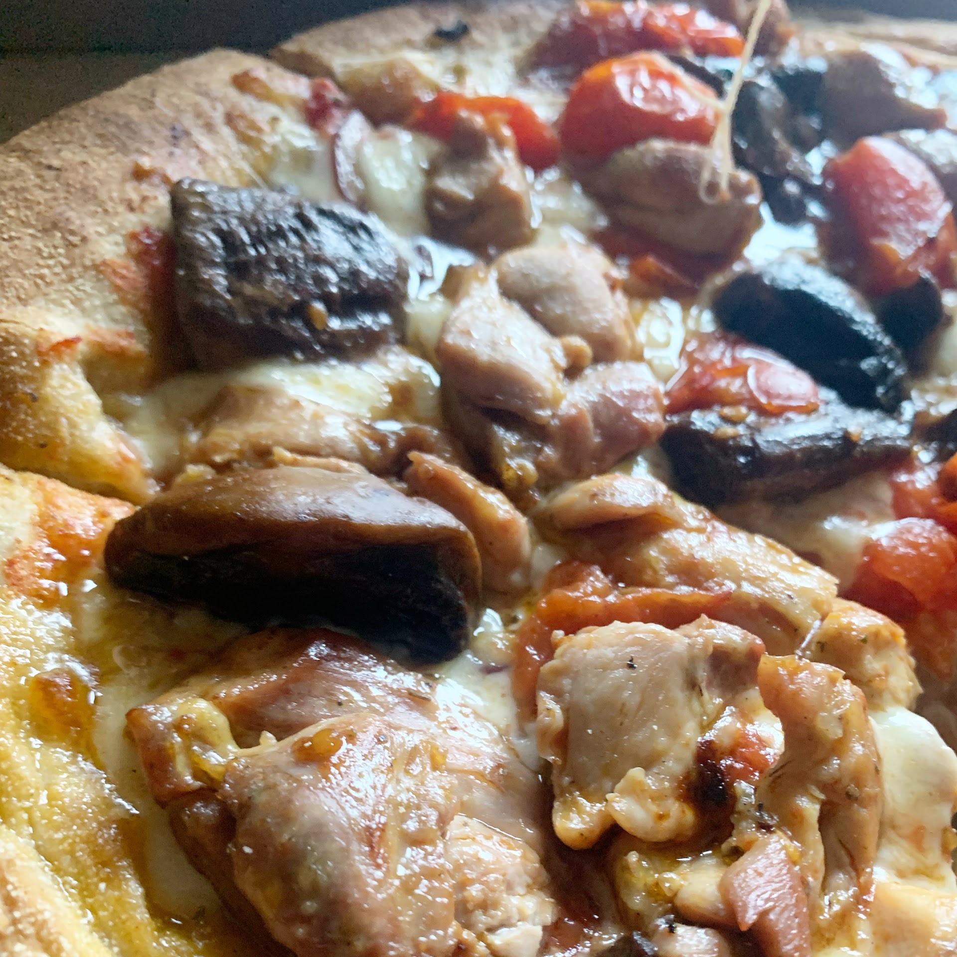 El otro día pedí a domicilio una pizza de pollo con champiñones (muy buena y perfectamente caliente), unas alitas a la brasa (eche de menos unas patatulis pero estaban buenas) y una ensalada (pensé que traería poca miel mostaza pero estaba súper bien).