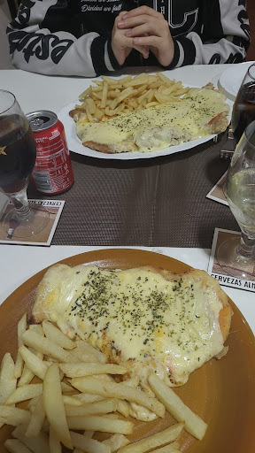 We had 4 beers (€2.80 each) and we shared a Milanesa XXL (€19), a breaded thin piece of beef, deep fried and covered with tomato sauce and cheese. It was a greasy mess with the only flavor coming from the dry oregano sprinkled on top. For a dish labeled XXL, it only came with a perhaps a dozen small fries. We repeatedly asked for another knife but never received it so we ate passing one knife back and forth to eat our meat. I had to walk into the restaurant to get my own serviettes.
