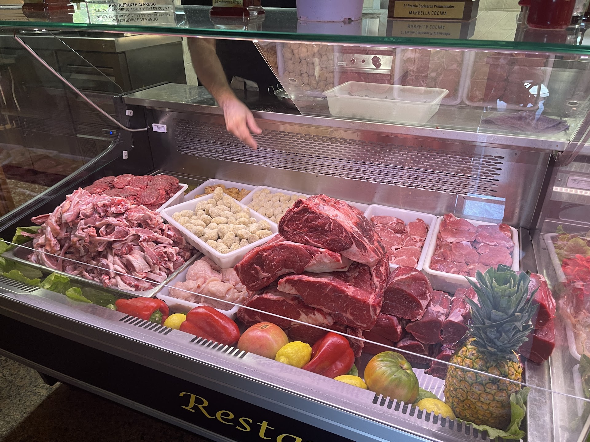 A hidden Outstanding gem, a traditional Spanish Restaurant with excellent food, service and cleanliness. I’m sure many tourists don’t know this place exists and as far as I could see most of the diners were Spanish which also says something. I was going to try this restaurant last year but the look of the exterior, as you will see from the photos, put me off, however you should never judge a book by its cover. We had lunch there today and we were very impressed, the outside seating was full so we sat inside the large restaurant. This is a family run business and we were greeted by both the owner and his son a very nice touch, I ordered the tuna steak cooked medium with salad my other half had steak and potatoes a traditional Spanish dish both meals were large portions, great value for money and delicious, what was nice to see is the meat and fish are fresh and you can see the products behind a refrigerated glass counter just like a butchers shop, looks like they sell the fresh meat as well. I will have the fillet steak next time, had one last night in another Local restaurant it was a much higher price and was a cooked frozen steak at least here it will be guaranteed fresh. I have included the bill in photos. Highly recommend this restaurant, as usual in Spain unless you say you don’t want bread they will just deliver it to you and charge. Toilets are large and spotlessly clean. Back again today and I had a freshly cut Fillet steak cooked to perfection and very tasty best steak I have had in a long long time. The restaurant will close for holidays tomorrow 10th June...
