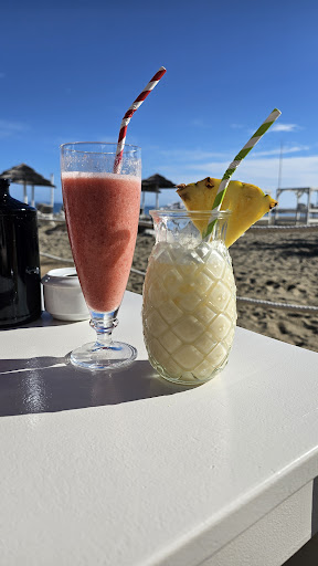 We should have read the reviews before stopping for a drink here. It was sunny, and we chose a table overlooking the beach. They were playing reggae music, and the atmosphere was great until other people started smoking... Gone was the fresh smell of summer and ocean breeze. The waitress left the menu with us, but after 30 minutes toasting in the sun, there was no sight of any waiter or waitress to come take our order. My husband waved for their attention and someone finally came. We ordered the "fresh fruit smoothie" at 7.95€ and the "piña colada" at 12.50€ . Two more tables arrived, and they ordered and got served before we even received ours. Well... there was nothing fresh about the smoothie. It did not taste of anything at all, just one of those prepacked frozen pouches that they put in the blender. The cocktail was more of the same. It tasted of pineapple juice and the typical syrup-based cocktail. No alcohol at all, I would say. We brought this up with the owner, and she claimed the fruit was all fresh. However, she showed me a frozen pouch for any other flavour of smoothie. When asked, "Can you then show me a banana and strawberries if I asked you?", she said she didn't have any left as she had used them on the smoothie we ordered. Convenient, right? I refused to pay for it and just paid for the cocktail (despite having only drank half of it). I really DONT recommend this place. Just walk a bit further down the road, and you can get way...