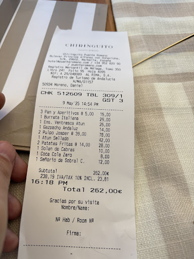 It was our first time in Chiringuito. We passed by it many times and finally had the opportunity to try it out ourselves. We were greeted very warmly and the atmosphere is absolutely breathtaking especially during the sunset hour. Once being seated our waiting approached us in a bit hectic way and let us the menu. When we were ready to order our drinks he replied to our choices "i really don't recommend you this one". The same reply to our second choice "if I was you I really wouldn't take it". Despite recommending us other options on the menu, it left a very poor impression. Additionally we ordered a portion of fries and an item from the vegan menu (which is quite extensive and many options were available) which our waiter unfortunately did not know existed. After approximately 15 min our waiter returned informing us that the vegan option was not available anymore. After another 5-10 min he came back to ask to take the order for an alternative dish. Overall, the waiter kept blaming the kitchen or the bar to be late and busy, which is not professional. As we were seated more on a side, unfortunately we didn't receive a lot of attention by the waiting staff. No one checked on us during the dinner. The main course arrived after a good 30 min however the fries were still missing. We had to ask two more different waiters, both of them were quite unfriendly, one of them just telling us in spanish "digame" from far away and then promptly rushing away without replying to our response, especially not even apologizing for taking an hour to bring us a portion of fries. Finally our fries arrived which were a disappointingly small portion for 7€. It seemed like we had gotten the leftovers as the majority of fries were of 1-2 cm length, making it impossible to dip them into the condiments. Once it came to the payment transaction, our experience got more and more disappointing. When asked to pay, the reaction of our waiter was not very happy. As we were a group of people we asked to pay separately and had already figured out how to split the bill ourselves. After the first transaction he quite rudely asked to pay all together as it would be easier for the cashier to handle the bills. We denied and he seemed very annoyed. Once all of us had paid he told us that 21€ were still missing. After a quick look at the bill by one of us we figured out that the dish that was unavailable had not been voided yet. We felt like he was even more annoyed and made us feel likenwe were trying to trick him. We were about to leave when he stopped us again saying that 10€ were still pending. As we did the math correctly, we were certain that we paid the full bill. Telling us "you can calculate yourself" whiles standing in the middle of the restaurant, we used a calculator to double check everything. Without asking our waiter delegated our calculations on our phone and typed the calculations in himself to find out that he was wrong this entire time. We have never experienced being accused by a waiter ever, and we certainly did not expect it in a 5* property. We will definitely not...