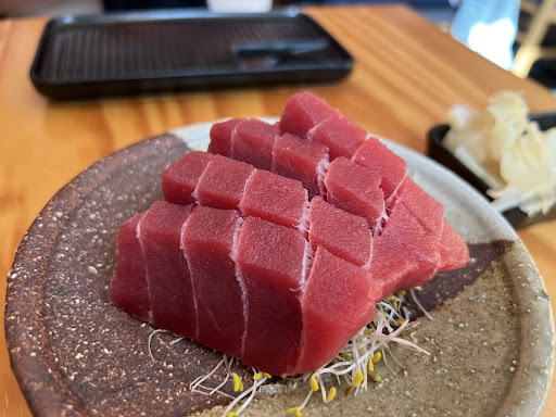 Due to the reviews, we paid a visit for a Sat lunch. If I can give MINUS star, I would do so. Sat down 10 minutes without a menu. Restaurant is noisy and 100% UNAUTHENTIC. No hamachi, no toro and no butterfish (3 items out of 7 were not available). Our ordered tuna sashimi was terrible, 1st very fishy and 2nd the tenders in between couldn’t the chewed (as pic). When I showed that to the waiter (he’s from Philippine but looks like a Japanese, not racist to mention that because there might be a few Waiters on shift), he said, „that’s all we have. And the spicy tuna roll will be using the same too.“ therefore we had to cancel both orders. I showed him the pic of those in reviews, he said exactly, „mam, those are 6 months ago pictures and we don’t provide that quality anymore.“ We were shocked and felt trapped, and BE CAREFUL that all the pictures posted by the restaurant, are just for misunderstanding people, because those were NEVER on the menu. Not an...