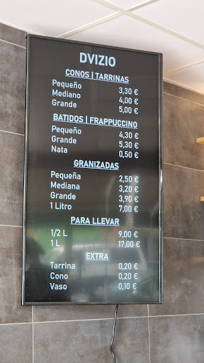 Read moreHeladería riquísima, con mucha variedad de helados y la verdad que a cuál mejor, súper difícil decidirme cada vez que voy porqué me gustan todos, son espectaculares!!!!! Y lo mejor es que te llenan la tarrina a tope hasta sobresalr, no como otros sitios que te ponen una o dos bolitas justas. Si pudiera le pondría un 10 estrellas, repetiré 1 y mil veces más, porqué a demás el trato del personal es servicial y amable. Tienen terracita para sentarse a comer tu helado tranquilamente y también te lo ponen en tarrina para llevar y comerlo en casa si lo prefieres. Si eliges esta opción puedes dejar fácilmente el coche en la puerta en doble fila sin problema. El local se ve nuevo, bonito y limpio, de acceso fácil para personas con mobilidad reducida y tienen baño adaptado también. Como bien dice el nombre los helados realmente están "DVIZIO"🤤, ...ahh olvidaba mencionar que también tienen granizados que entran súper bien en veranito...