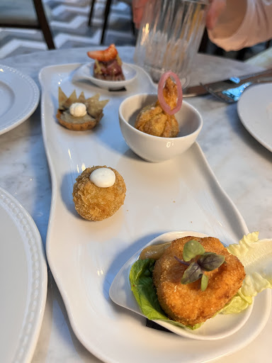 We really expected a culinary high-quality evening and when we entered the interior and ordered the cocktails this looked promising. My husband is severely allergic to nuts and we asked for the menu but this could not be adjusted to take this allergy into account so we ordered à la carte. When we said we wanted the tapas (€25 for 5 pieces) to share, the staff tried to sell us more oysters, which we thought was a strange move in a culinary restaurant. The tapas were, even for tapa standard, on the small side. A lot of fried options such as a small cordon bleu, a chicken croquette and a samosa, then a strangely unappetizing tartlet with aubergine and a tiny piece of tuna, definitely not worth the money. As a starter I went for the ajoblanco (€26) and my husband for the only option as a starter without nuts, a tomato tartlet (€24). The ajoblanco was tasty but finished in 2 bites and was accompanied by 2 small stuffed squids which were also tasty and cooked proper. My husband's tartelet was also not bad but very sweet. As a main course I took the leg of lamb (€42!!!) and my husband the chicken. The leg of lamb was cooked perfectly and fell off the bone but was under seasoned and again not enough. There were no carbs involved which I normally have no problem with but then give plenty of veggies…my husbands chicken was very dry but tasted ok. We each drank a glass of wine and sparkling water. After dinner we didn't even take dessert because we really didn't think it was worth the money. We asked for the bill and lost €220. I have absolutely never a problem with paying a lot of money for good food but this was just ridiculous!! I paid for their refurbishments which probably cost a fortune and created a wonderful atmosphere but I prefer to eat excellent tapas in a wooden barrack. After reading all the bad reviews, I would advise this restaurant to take them to heart and not always give a standard copy paste answer. We're...
