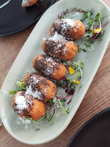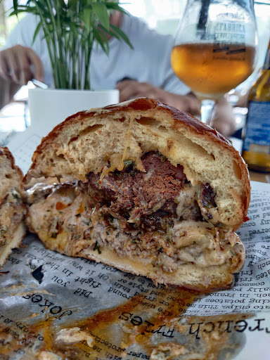 Read moreEn cuanto a hamburguesas no está mal, nosotros pedimos la de salsa barnesa y la de galleta Lotus. La de Barnesa más floja, nada del otro mundo. La de Lotus si que nos gustó. Para mi gusto el pan brioche estaba tirando a seco, he comido muchas burguers con ese tipo de pan, y debería ser algo más suave... Pero bueno es algo personal. El toque dulce del Lotus la verdad que nos gustó bastante. Dónde flojea muchísimo el sitio es en los camareros... Es una pena. Son desordenados, con poco conocimiento de lo que sirven.... El que nos atendió, un chico joven con barba, cada dos por tres se comía unas patatas fritas en la zona de barra ( solo espero que no fueran de algún cliente)..... Le preguntamos que ingredientes o sabor tenía la salsa Barnesa y el tío no tenía ni idea (" los de la salsa esa blanca de toda la vida" nos dijo) y a mayores va a cocina a preguntar, vuelve a contarnos lo y más de lo mismo, o no se enteró o se le había olvidado en el trayecto.... Nos trajeron las hamburguesas y ni siquiera nos habían preparado la mesa.... Pedimos unas patatas con queso azul, nos las trajeron con beicon y al final le tuvimos q decir que mejor no las trajera porque ya íbamos acabar las hamburguesas y no habían llegado.... Entiendo q es verano pero si montas un sitio de buenas hamburguesas donde las cobras bien, deberías prestar más atención a este tipo de cosas, es mi humilde consejo. Otra cosa que me pareció raro es que en cocina, algunos llevaban guantes para manipular las cosas, pero justo el tipo que hacía las bolas de carne no llevaba.... Igual por norma no está obligado pero sería más higiénico.... Está genial que vendas mucha imagen por RRSS y que arriesgues en las burguers, pero hay que prestar atención a otras cosas. Puede que volvamos porque las hamburguesas están bien, pero te vas con mal sabor de boca con...