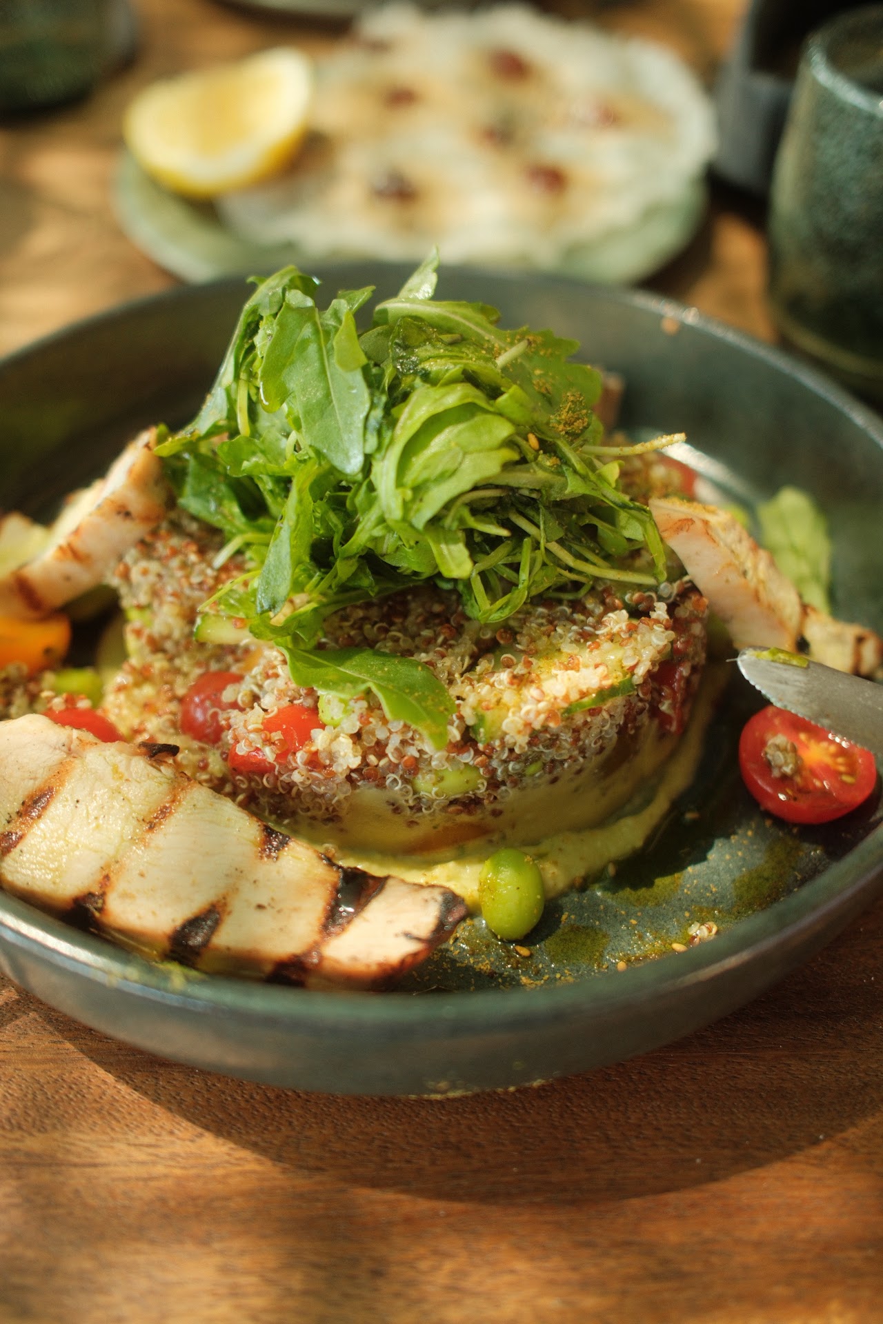 Beautiful location and beach vibe. Music a hair too loud for my taste but a fun setting. Food well presented and pretty. Drinks were good. Service ok. Our first waitress was delightful. Not sure what happened to her but she disappeared and we had someone new who wasn’t great. We had an item we ordered not show up, which was fine in the end, but inquired what happened and it wasn’t on our order- no big deal. The 2nd waitress seemed annoyed we even asked. We were offered bread, given 3 small rolls, which were marginal and then charged $9 for them. Food was good, my quinoa salad with prawns was very fresh but lacked flavor overall, and no salt on the table, but there was pepper. Where it all went wrong for us was when the table next to us started smoking, including a cigar. We immediately asked for the check/ 2 or 3 times and it wasn’t never brought. I ended up walking up to the bar after waiting 10 mins and asked for the check to be brought. Still, no check 5 minutes later. Had to ask 2 more servers and finally our latest waitress brought it. Disappointing...
