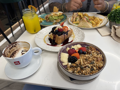 The menu is extensive and caters to all tastes – from hearty full English breakfasts and healthy options to fresh pastries, eggs prepared in every style, pancakes, and delicious smoothies. Everything we ordered was fresh, well-prepared, and full of flavor. The portions were generous, and the presentation thoughtful. Coffee was excellent too, strong and aromatic, and the fresh juices were a highlight.