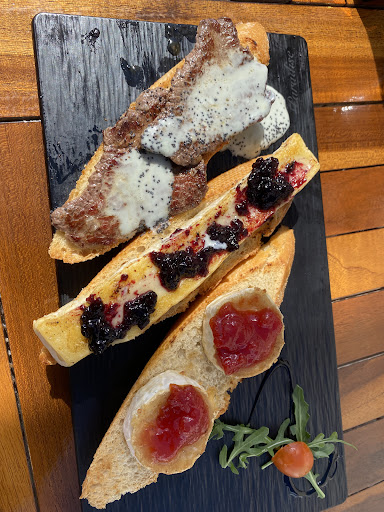 Our charming guide for the evening was Robin, a smiley dude all the way from Colombia. This guy was friendly, attentive, and had a knack for helping us choose the perfect grub in record time. We kicked things off with a fizzy drink called "Juve Camps Cava" and dove into three delectable starter pinchos: Cabra, Bríe, and FOI-grass (fancy, huh?).